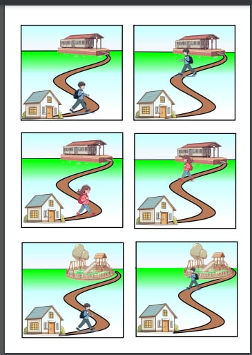 ②「~が~に行く・帰る」(人物:お父さん/お母さん/男の子/女の子。場所:家/公園):16パターン