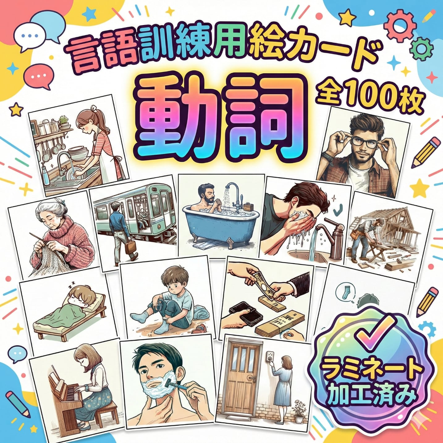 【商品】動詞の絵カード(100枚)