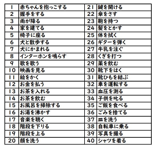 語彙のリストは添付画像をご確認ください。